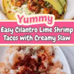 This Cilantro Lime Shrimp Tacos with Creamy Slaw Recipe is a guaranteed crowd-pleaser that feels vibrant and fresh but comes together easily enough for any weeknight. You’re going to love how the bright, zesty shrimp pairs with smooth, tangy slaw in every bite. It’s perfect for quick dinners, casual get-togethers, or anytime you want a taste of sunshine on a plate. Give it a try, and I promise it will become one of your favorite taco recipes for years to come!
