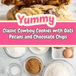 This classic Cowboy Cookies recipe is packed with a delightful mix of textures and flavors, featuring chocolate chips, pecans, oats, and coconut flakes in every bite. Perfectly chewy and rich, these cookies are easy to make and sure to please any crowd.