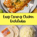 These creamy chicken enchiladas are a quick and easy weeknight Mexican dinner featuring shredded chicken, corn, and a flavorful creamy chipotle sauce baked with cheese in soft tortillas.
