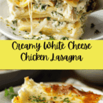 A rich, comforting white cheese lasagna loaded with shredded chicken, creamy white sauce, and layers of melted mozzarella and Parmesan cheese. Perfect for a hearty family dinner.