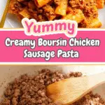 This easy 4-ingredient Boursin sausage pasta is a quick and creamy dish that combines tender rigatoni pasta with flavorful chicken sausage, rich Boursin Garlic & Fine Herbs cheese, and classic marinara sauce. Ready in just 30 minutes, it’s a perfect weeknight meal for those craving comfort food with minimal effort.