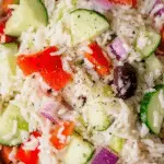 This Mediterranean Rice Salad is a hearty, wholesome, and super healthy dish that serves as a perfect side or main course. Featuring cooked rice mixed with fresh cucumbers, tomatoes, olives, sweet peppers, red onions, and a tangy feta dressing, this salad embodies vibrant Mediterranean flavors. It’s easy to prepare and pairs wonderfully with grilled or baked meats, making it an ideal addition to any meal.