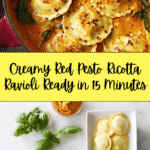 Red Pesto Ricotta Ravioli is a creamy and flavorful dish that’s perfect for a quick weeknight dinner. Store-bought ravioli is cooked and then tossed in a rich tomato-based red pesto sauce with fresh basil and creamy ricotta, creating a comforting and delicious meal in just 15 minutes.