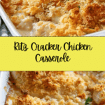 A comforting and creamy baked chicken casserole topped with buttery Ritz crackers and Parmesan cheese for a crispy, golden finish. Perfect for an easy, family-friendly dinner.