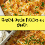 These Roasted Garlic Potatoes au Gratin are a rich and creamy side dish featuring thinly sliced potatoes layered with roasted garlic, cream, and cheese. Baked until golden and bubbly, this dish is perfect for holiday dinners or a comforting weeknight meal.
