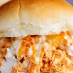 Grab your slider buns and pile on roughly a quarter to a third cup of the saucy shredded chicken into each. For the ultimate flavor burst, drizzle additional wing sauce on top and add a splash of Ranch dressing. Close them up and get ready to indulge in these scrumptious sliders that will surely become favorites at your gatherings.
