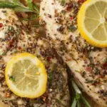 5. Serve: Spoon the thickened lemon sauce over the chicken breasts. Garnish with fresh rosemary sprigs and lemon slices. Serve warm for a comforting and bright meal.