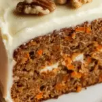 - Frost and Finish: Spread the cream cheese frosting evenly over the cooled cake. Use a spatula to create soft swirls on top. Optionally, sprinkle extra chopped walnuts over the frosting before slicing and serving.