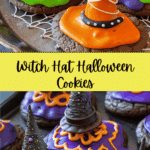 These easy Witch Hat Halloween Cookies are a festive no-bake treat made with fudge stripe cookies, frosting, and Hershey’s Kisses—perfect for parties or making with kids!
